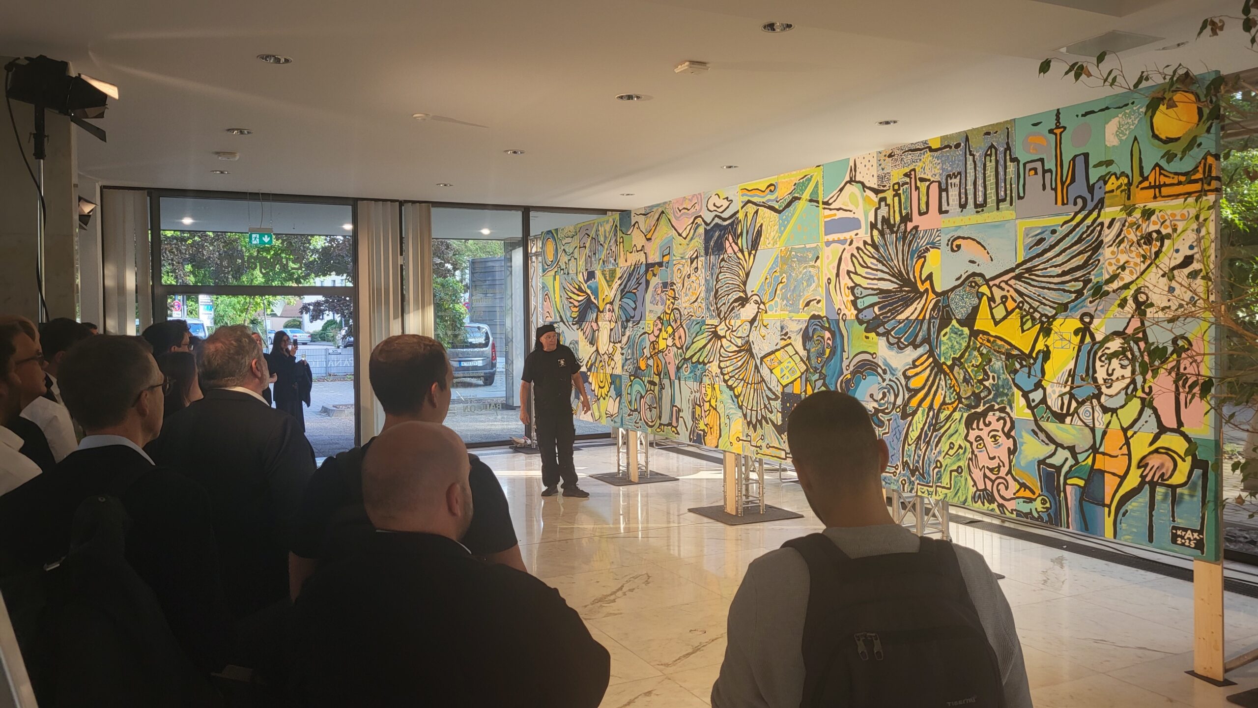 Zu den Höhepunkten im letzten Quartal des Jahres 2025 zählte zudem die Kunstaktion „Interactive Team Art Happening“ mit Kraxworx und Axel Gundlach anlässlich des Magpie Projects Offsite in Köln. Bei diesem Teambuilding-Event malten die 60 Teilnehmer je eine 60 x 60 cm große Leinwand mit vorgezeichneten Linien bunt aus. Die entstehenden Werke ergaben zusammen ein großes Gemälde, das im Rahmen einer Vernissage mit dem Haus-Aperitif „Italicus Spritz“ feierlich enthüllt wurde. Das Marmor-Foyer bot hierfür eine passende Kulisse.