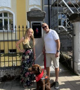Karin Schneider/SCHACHZUG mit Bailey und Prof. Dr. Stephan Eitner (Foto: SCHACHZUG)