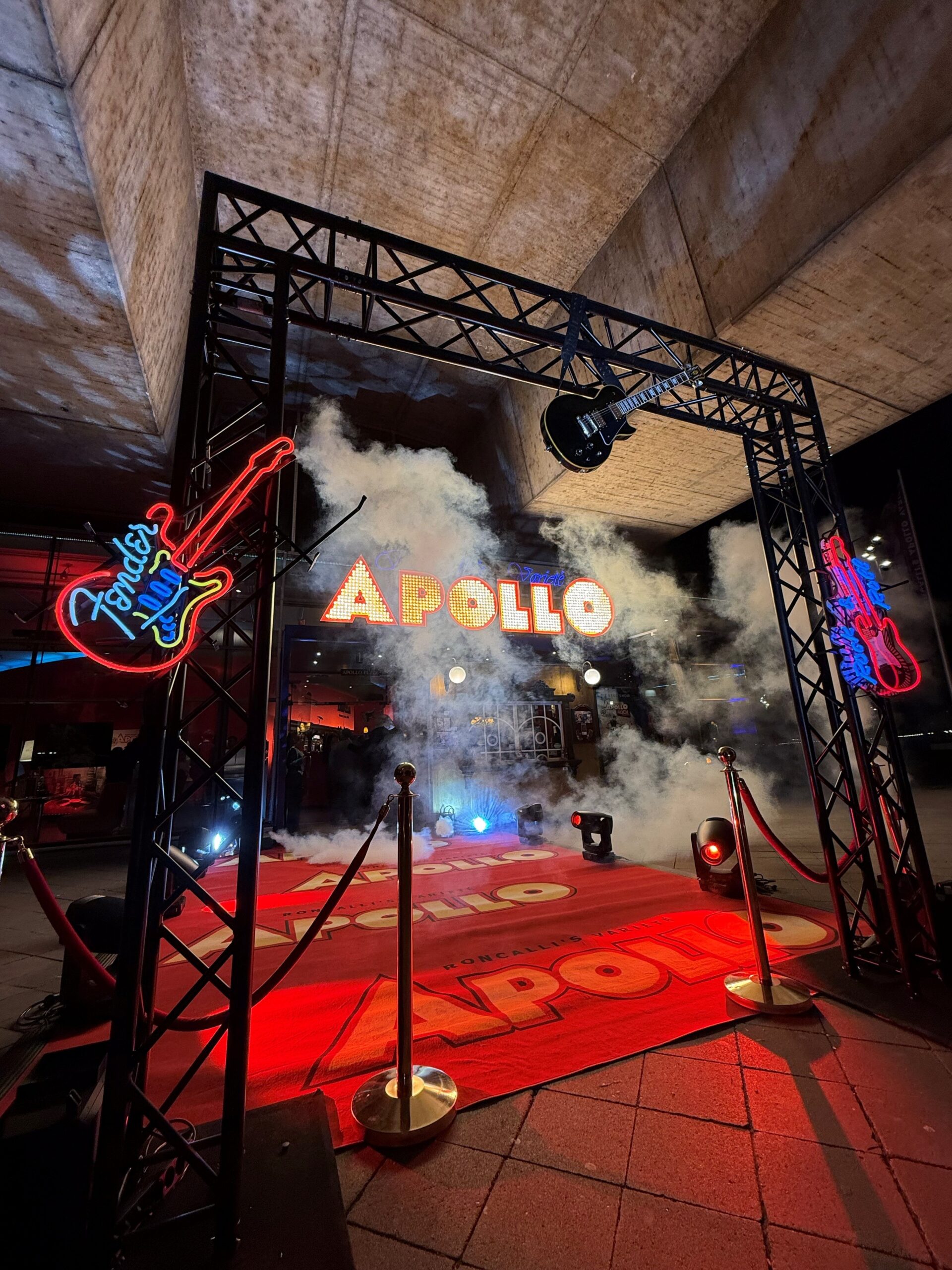 Im Januar feierte Roncalli’s Apollo Varieté die große Premiere der neuen Vorstellung „Rock Reloaded“. Auch hier kam die ergänzende Technik für den Premiere-Abend vom Kölner Technikdienstleister. Für eine besondere Atmosphäre des Außenbereichs und des Foyers sorgten Produkte von Astera und zahlreiche Spezialeffekte.